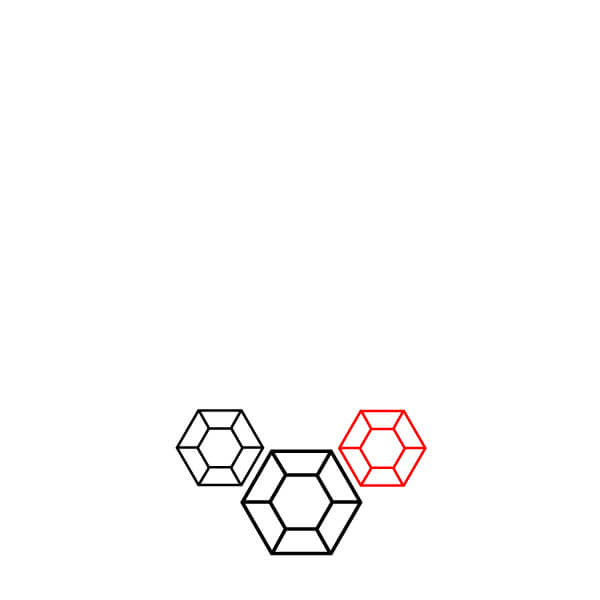 Bước 3: Vẽ thêm một hình lục giác có các mặt cắt ở bên phải của hình lớn. Lúc này, ba viên đá sẽ chạm nhau và nằm thẳng hàng ngang.