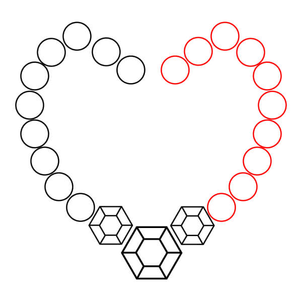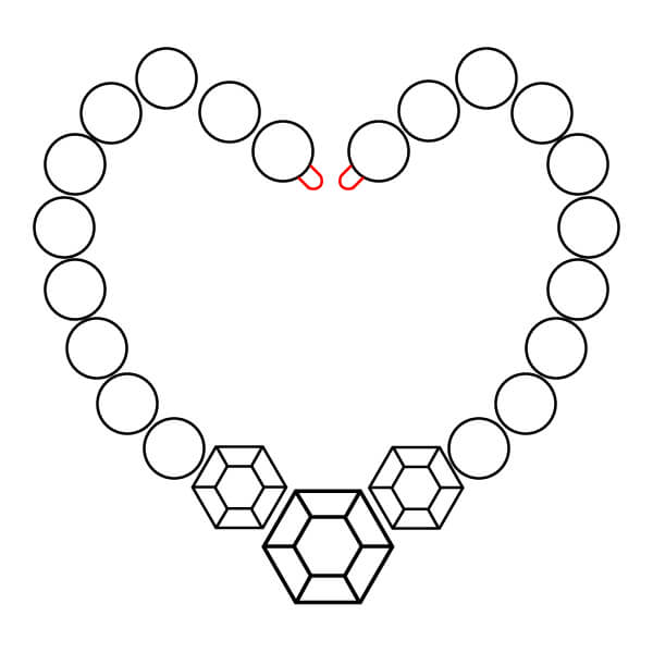 Bước 5: Thêm một đường cong gồm các hình tròn nối tiếp ở phía còn lại của vòng cổ, bắt đầu từ viên đá bên phải và tạo thành hình trái tim bằng các hình tròn.