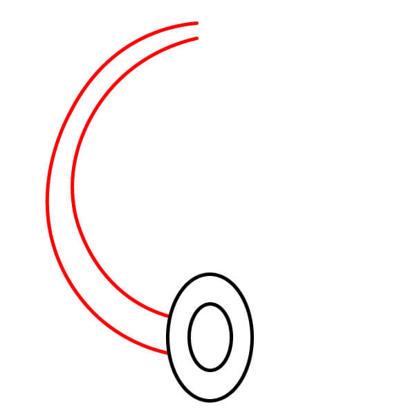 Bước 3: Từ phía trên của hình bầu dục, vẽ một đường cong kép hướng lên trên và sang trái.