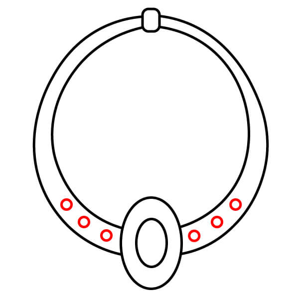 Bước 6: Thêm ba hình tròn nhỏ ở mỗi bên của viên đá hình bầu dục chính, đặt trên dải vòng cổ cong.