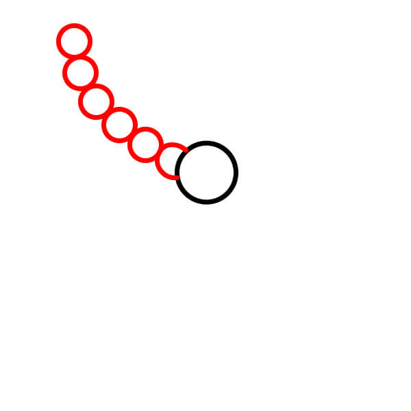 Bước 2: Vẽ một hàng gồm sáu hình tròn kéo dài từ hình tròn trung tâm, hướng lên trên và sang trái.