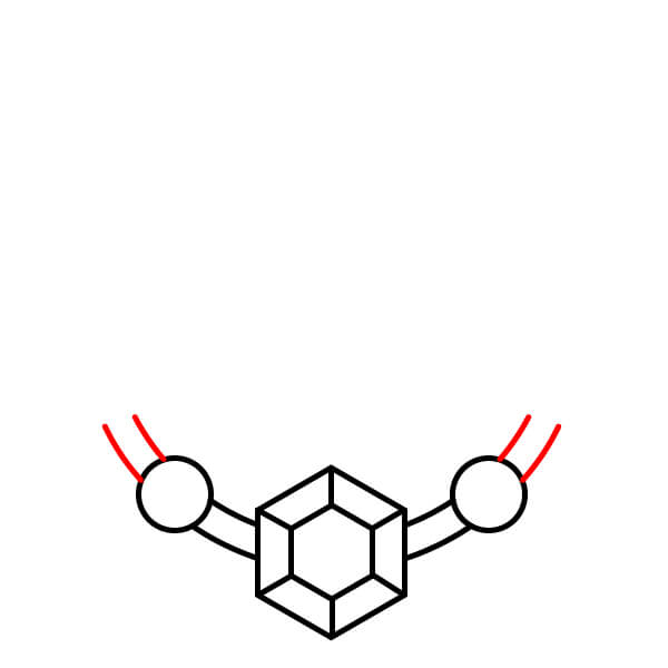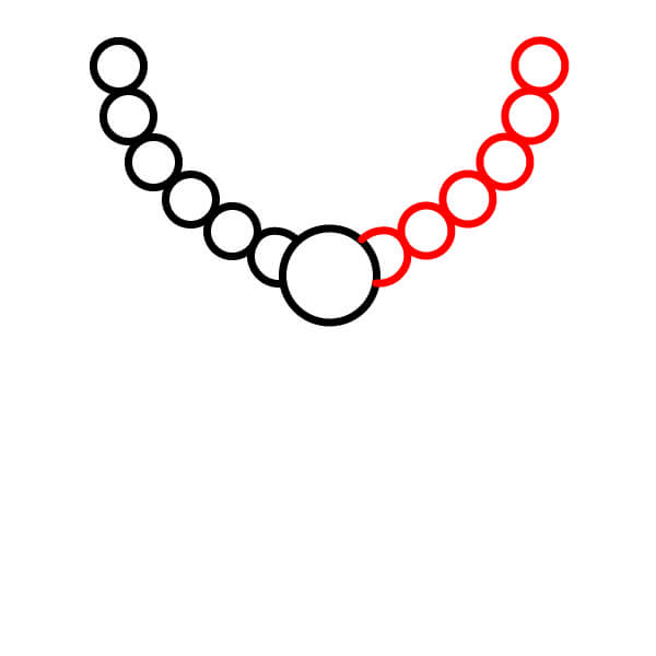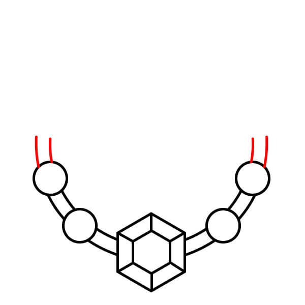 Bước 7: Từ các hình tròn cao nhất ở hai bên, vẽ hai đường cong ngắn (màu đỏ) hướng lên trên.
